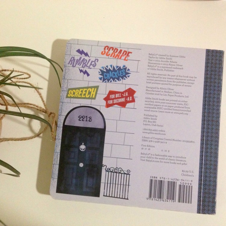 Deleite a su pequeño con los sonidos y las vistas de una misteriosa noche en Sherlock Holmes en El perro de los Baskerville. Las audaces ilustraciones de Alison Oliver se corresponden con el texto ingenioso y simple de Jennifer Adams para crear parejas que a los bibliófilos les encantará haber leído, como «hounds howl», «gates chreech» y «stairs crujen». Jennifer Adams es la autora de una docena de libros que incluyen a Remarkably Jane: citas notables sobre Jane Austen y el popular Y Is for Yorick: un libro ligeramente ABC para adultos. Jennifer trabaja como escritora y editora en Salt Lake City, Utah. Alison Oliver dirige el estudio de diseño Sugar. La cartera de diseño de Alison incluye todo, desde logotipos hasta diseño de packaging y productos para clientes como Chronicle Books, Citibabes y Aerie, así como Gibbs Smith. Ella vive en Nueva York.